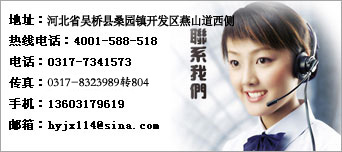 地址:河北省吳橋縣桑園鎮(zhèn)開發(fā)區(qū)燕山道西側(cè) 熱線電話:4001-588-518 郵編:061800 電話:0317-8323988 傳真:0317-8323991